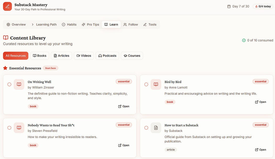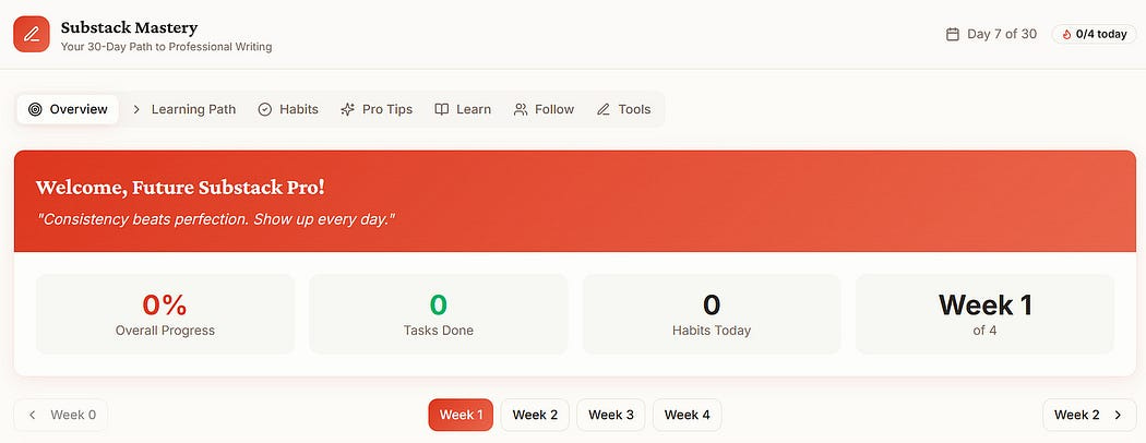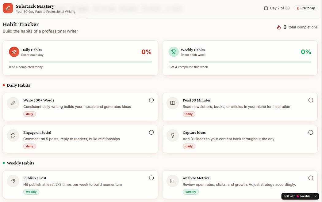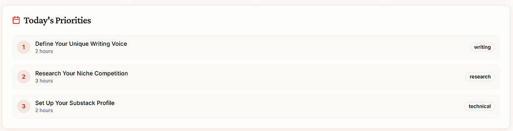 I called my app The Substacker, positioning it as the ultimate content writing companion. The platform helps me stay inspired and maintain a consistent writing rhythm by suggesting creative prompts, organizing resources, and managing task priorities.